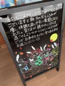 けい整骨院のブラックボードが新しくなり、秋仕様となっております。